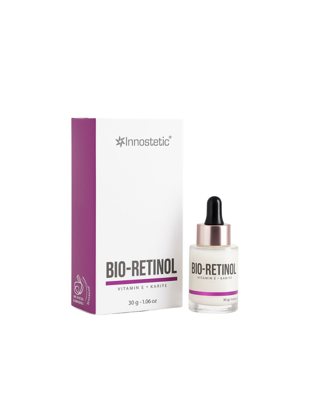 Nuestro suero facial Bio-retinol funciona como un concentrado antiedad intensivo combinado con vitamina E y karité para una regeneración óptima. El bio retinol es un activo 100% vegetal con la misma efectividad del retinol, sin producir sus efectos secundarios (enrojecimiento, descamación y picazón)